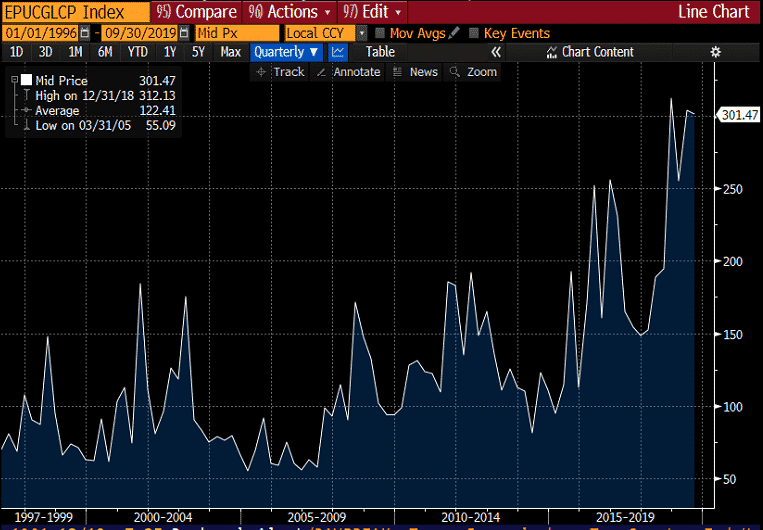 Investors are navigating in an environment with historically high levels of policy uncertainty. As we step into a new decade, market participants will be familiar with: