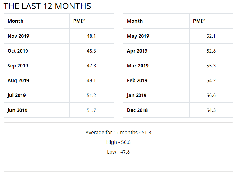 As the year draws to an end, the preliminary Markit Manufacturing PMI figures for the US shows that it will be another month of steady growth fuelling hopes of a brighter start for 2020. On the other side, the ISM shows that the manufacturing industry has been softening for the past eight months and contracted for the fourth straight months at a faster rate.