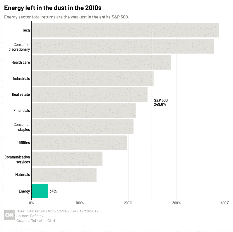 As we move into a new decade, we see that the energy sector has been left behind. Looking at the different sector of the S&P500, energy emerged as the worst performer.