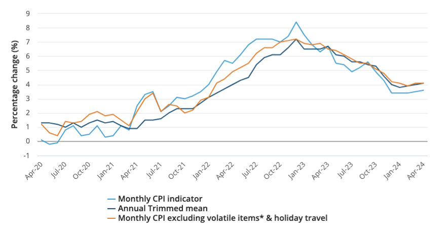 25 June 2024 By Evan LucasThe consensus for the monthly Consumer Price Index (CPI) is for a rise to 3.8% annually in May, the range being 3.6% to 4.0%. This would be the fourth consecutive rise in yearly inflation and would show that not only is inflation ‘sticky’ it could be considered ‘entrenched’
