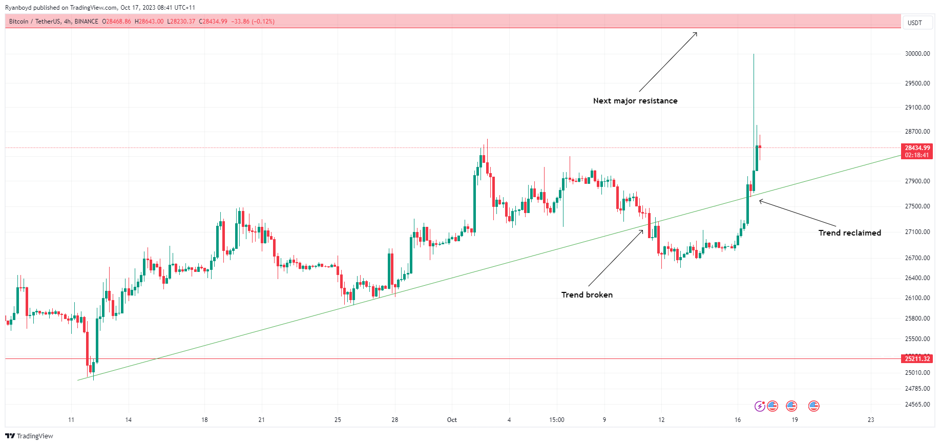 17 October 2023 By Ryan BoydBitcoin traders had some excitement in the session overnight, with some false news sending price rising over 7% in a few minutes.