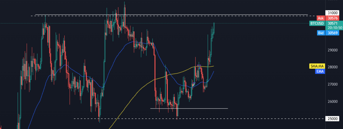 News & AnalysisNews & AnalysisBitcoin displayed strong momentum yesterday, with a notable increase of over 10% and approaching a 15% gain within the day. Price surged and has breached the previous resistance level at 31,000. This level has historically acted as a significant barrier, causing the price to retreat to around 25,000 after multiple attempts to surpass it.