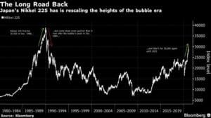 - DOW hits all time highs, Nikkei back to bubble era prices and Bitcoin’s wild ride.