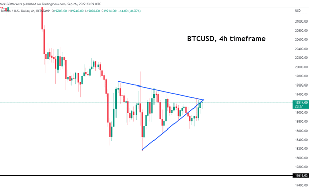 News & AnalysisFollowing the previous Bitcoin analysis (https://www.gomarkets.com/au/articles/economic-updates/bitcoin-usd-technical-analysis/), bitcoin continues to break below pattern after pattern, recently breaking out and re-testing a descending flag pattern on a 4h time frame as seen below: