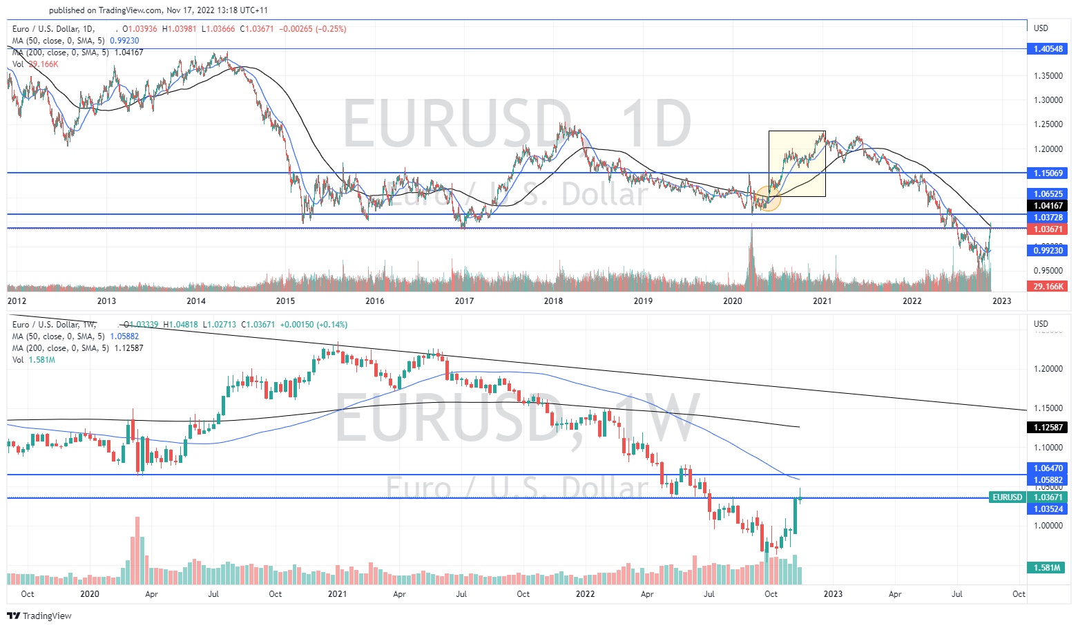 News & AnalysisThe EUR has been on a ‘recovery rally’ since it fell below parity level with USD earlier this year. With inflationary pressures potentially easing across the world the USD has finally taken a breath. The currency which has been haven for many market participants in dealing with the high volatility finally saw a dip after weaker than expected US CPI figures last week. Since this time the USD Index or DXY has fallen by nearly 4.5% which is a significant drop. This has had an overall positive impact on currencies that were struggling such as the AUD, JPY and of course the EUR.