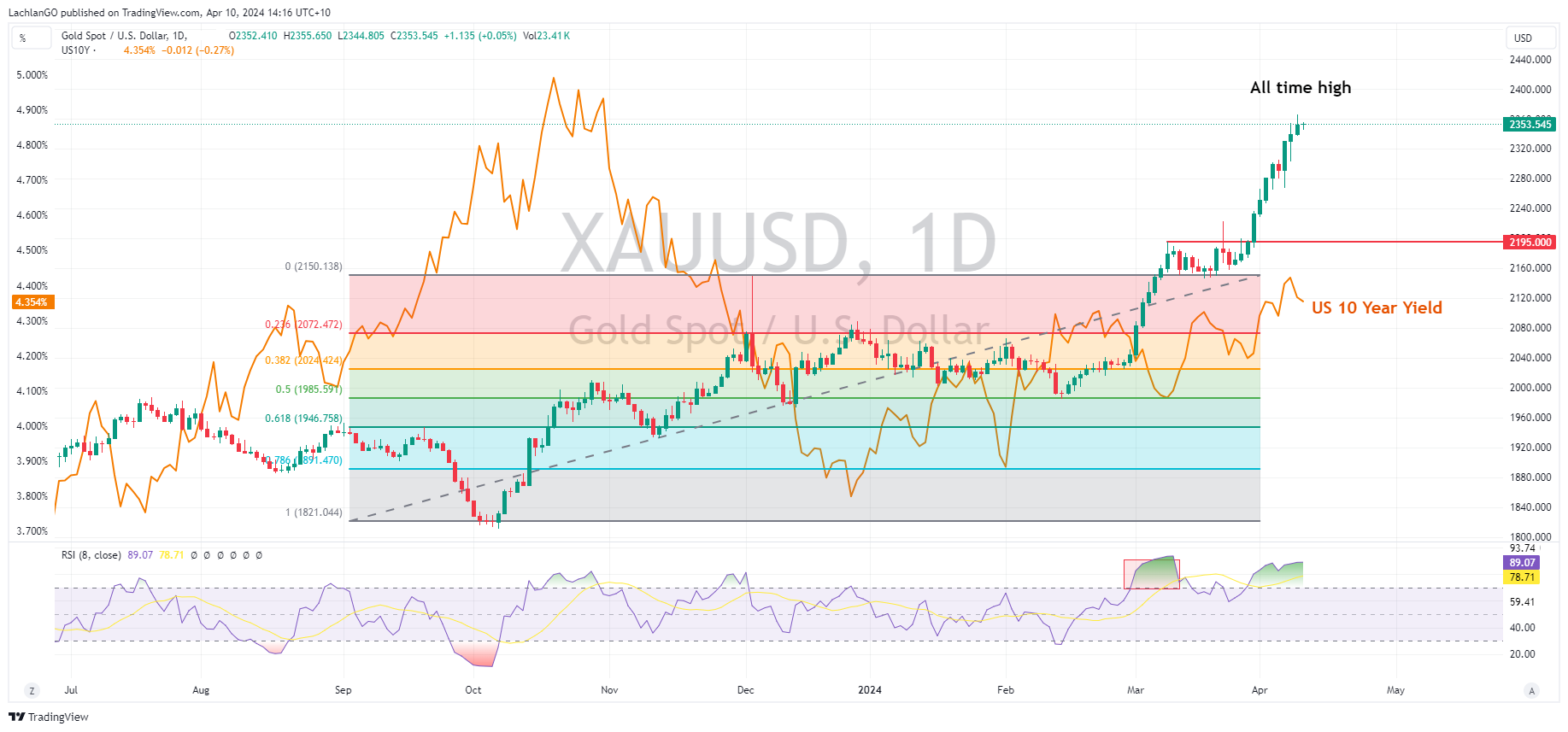 Golds record run-up to all time highs has seen the precious metal take headlines during April. As an inflation hedge it should benefit from a hot CPI reading, but a cool reading would see yields and the USD drop which is also gold positive. It’s hard to predict how gold will react fundamentally to todays CPI, though from a chartist point of view XAUUSD is in serious overbought territory and a correction is overdue.