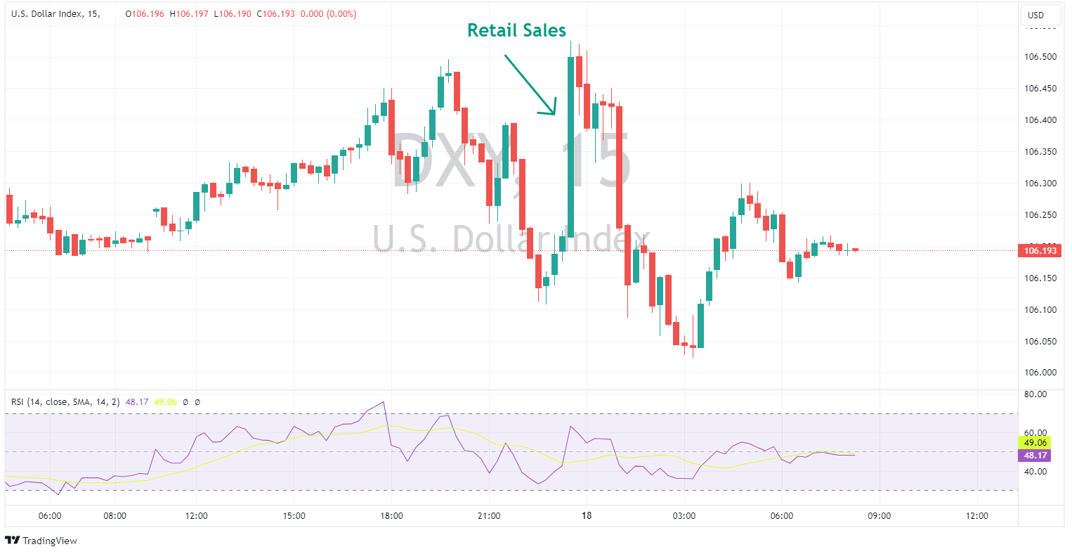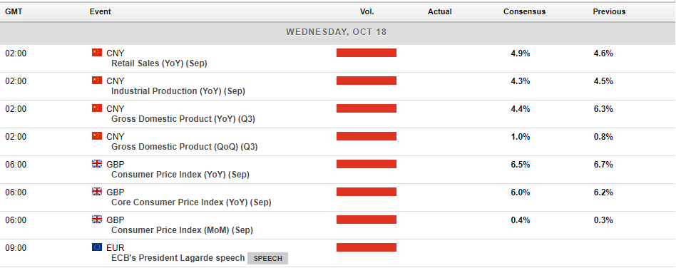 18 October 2023 By Lachlan MeakinUSD traded in a tight range on Tuesday despite a big move higher in treasury yields after a beat in US retail sales figures, the headline rising 0.7% M/M vs 0.3% expected. DXY whipsawing within a contained range, hitting a high of 106.52 on the initial reaction to the retail sales figure, but quickly paring gains to hit a low of 106.02. Fed member Barkin Fed’s also spoke noting that the FOMC will have a good debate when asked about the chance of a Fed hike at heir November meeting. Looking ahead, Fed speakers are set to continue, ahead of Chair Powell on Thursday, also any further geopolitical updates will be closely watched by USD traders.