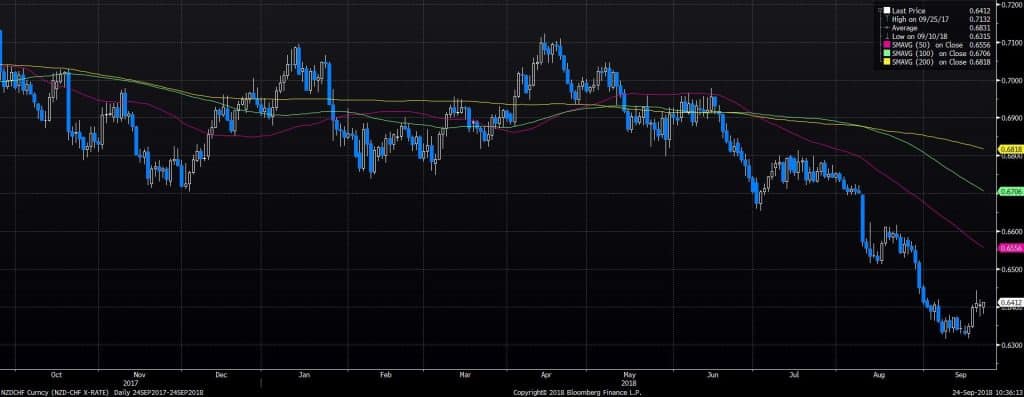 Therefore, as long as the EM rout exists, one should expect further depreciation in the price of AUD and NZD against the USD, and other safe-haven currencies such as JPY and CHF. NZDCHF in particular looks very interesting, with a clear medium-term downward trend.