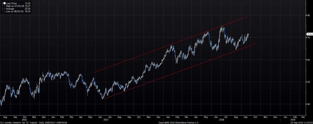 The story went like this: Saudi Arabia announced to the world back in April that they could increase their output to 12.5 million barrels a day to fill in Iran’s gap. The reality is different: Saudi Arabia is presently only producing 10 million barrels a day. To get to the 12.5 million barrels mark, they’ll need to do a lot more drilling, and sooner rather than later. Elsewhere in Russia, production has gone up by 250,000 barrels a day, but this won’t be enough to fill in the 2 million barrels a day gap which would be created when Trump’s sanctions on Iran becomes fully functional.