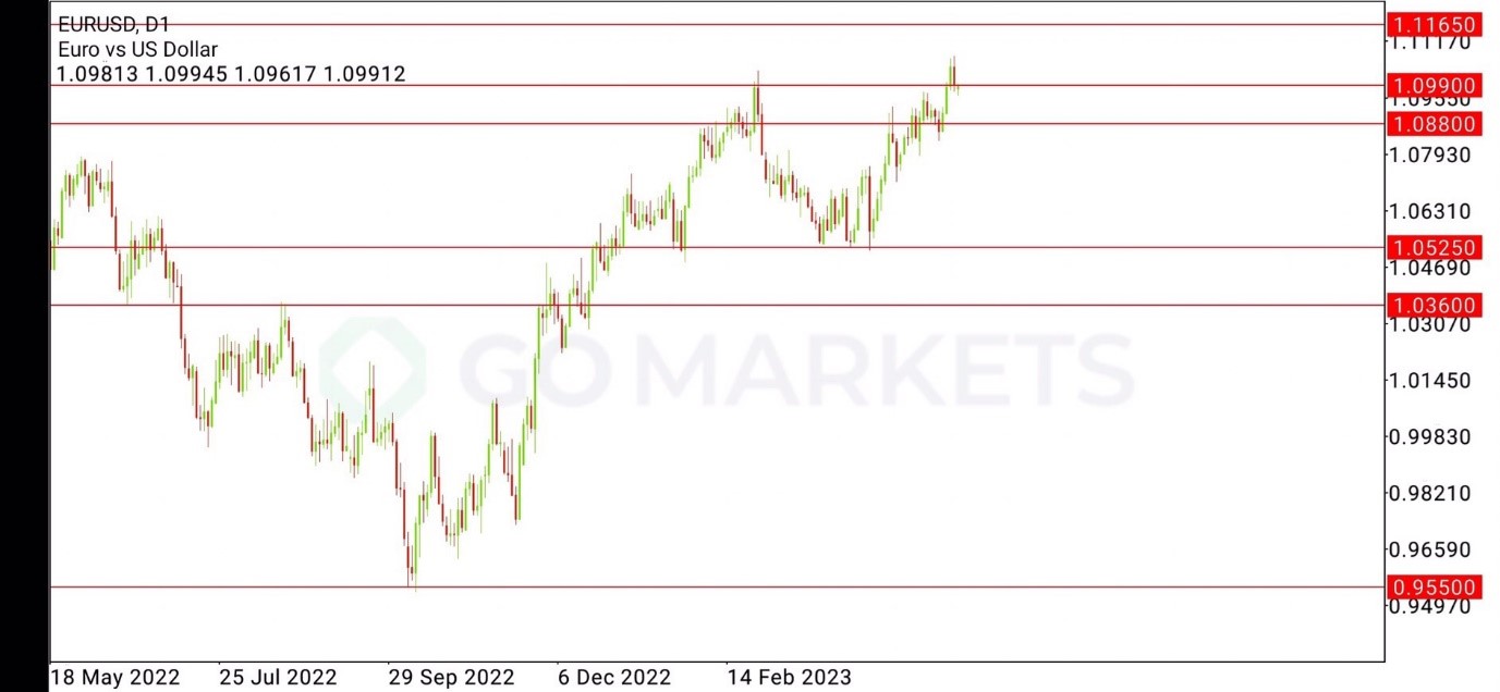 EURUSD Price can be viewed both positively and negatively. As EURUSD is currently hovering around 1.09900, which is the previous high in the Weekly and Daily timeframes, and is starting to lose buying momentum as the weekly candlestick has moved in the past week. guts down (Significantly) as last week’s closing price was lower than last week’s high. After adjusting up to test the latest High before there is a selling pressure down.