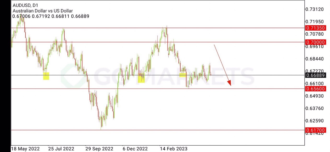 Forecasting that price May have a more negative direction. As the price of AUDUSD continues to be in a downtrend in both the short and medium term. Therefore, a correction to continue downwards is very worth watching, especially the support at 0.6560 on the daily timeframe level, which is expected to be the next target for AUDUSD in the event of a decline. And in case of a rally, it is expected that the price may rise slightly at the resistance area of 0.67750.