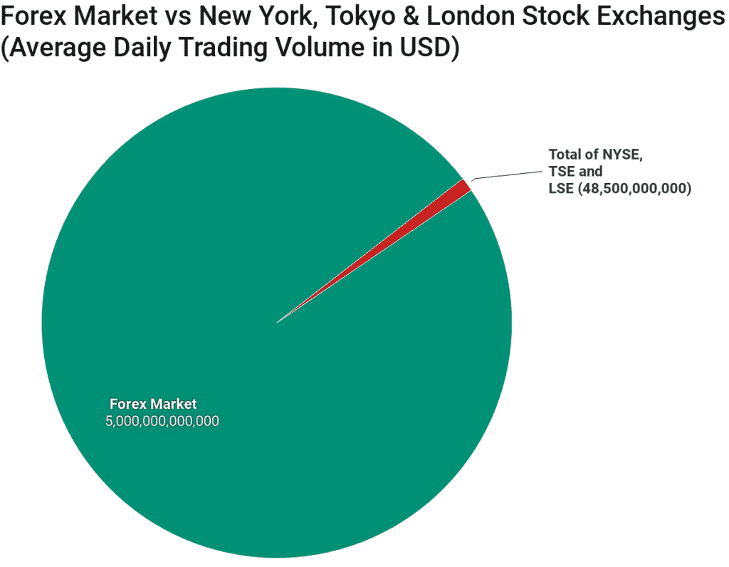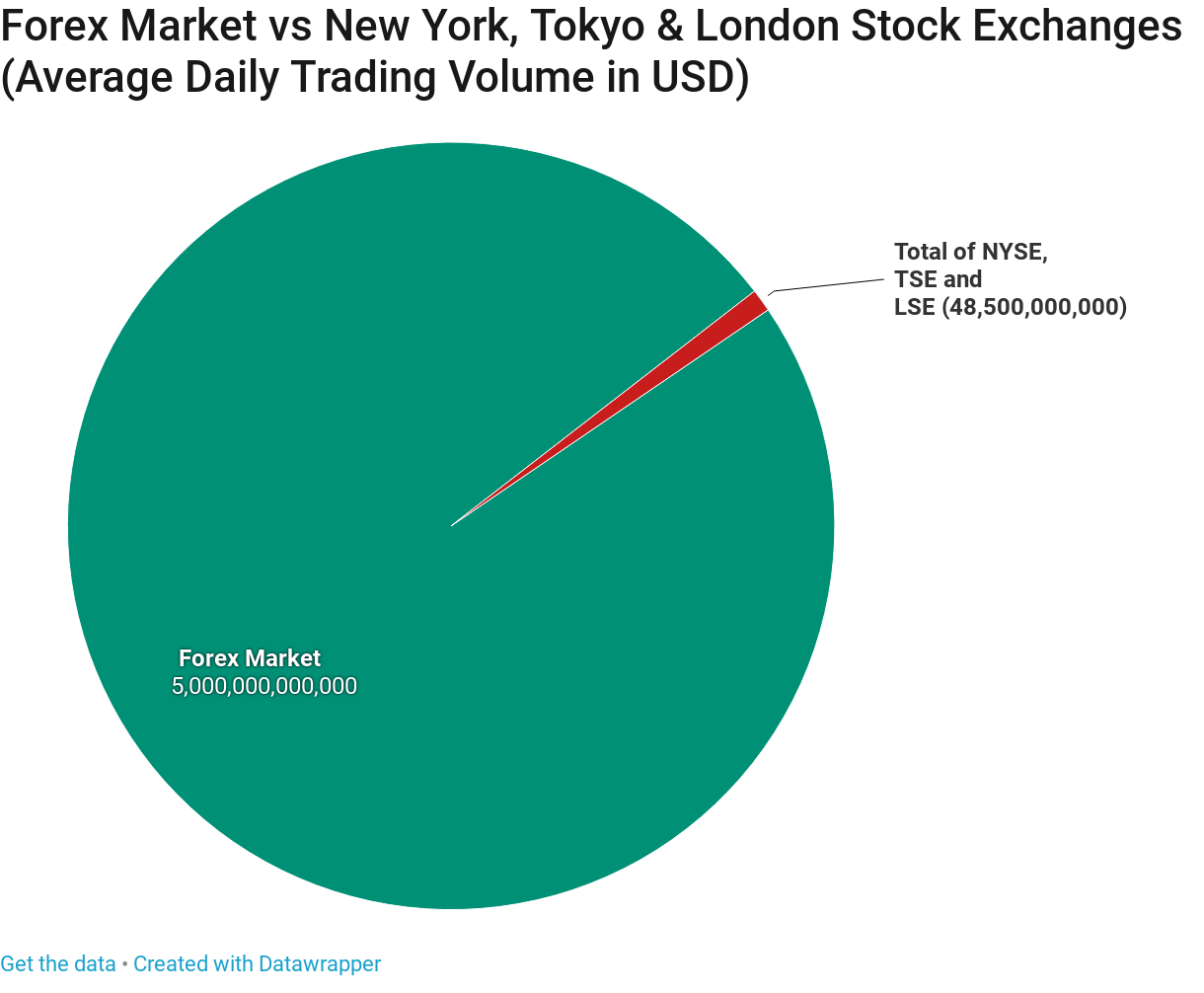 News & AnalysisThe Forex market is the largest in the world with around $5 trillion average daily trade volume. It dwarfs the daily trade volume of the New York (NYSE), Tokyo (TSE), and London Stock Exchange (LSE) which stands at around $22, $18 and $8 billion respectively. In this article, we will take a look at the top 5 most traded currencies in the world.