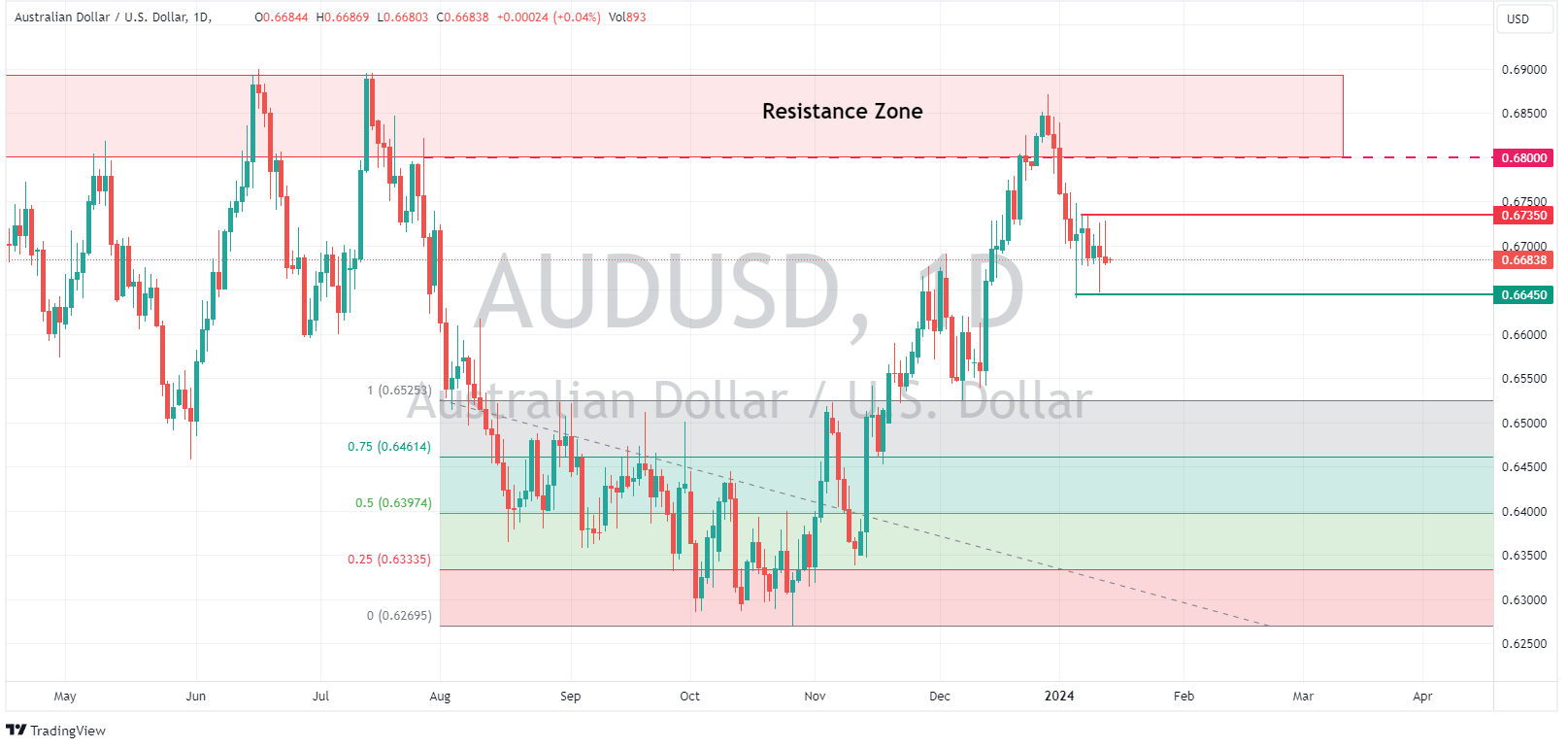 AUDUSD has struggled to find any real direction in the last week of trading after a marked decline to start the year. The pair has whipsawed in a tight range from 0.6735 to the upside with a lower range boundary of 0.6645. With the market still undecided on the RBA’s moves going forward (peak rates? cuts?) Thursday’s job report could see the Aussie find some direction, with the above range levels the key levels to watch. After November’s bumper figure a surprise to the downside this time round could be on the cards.