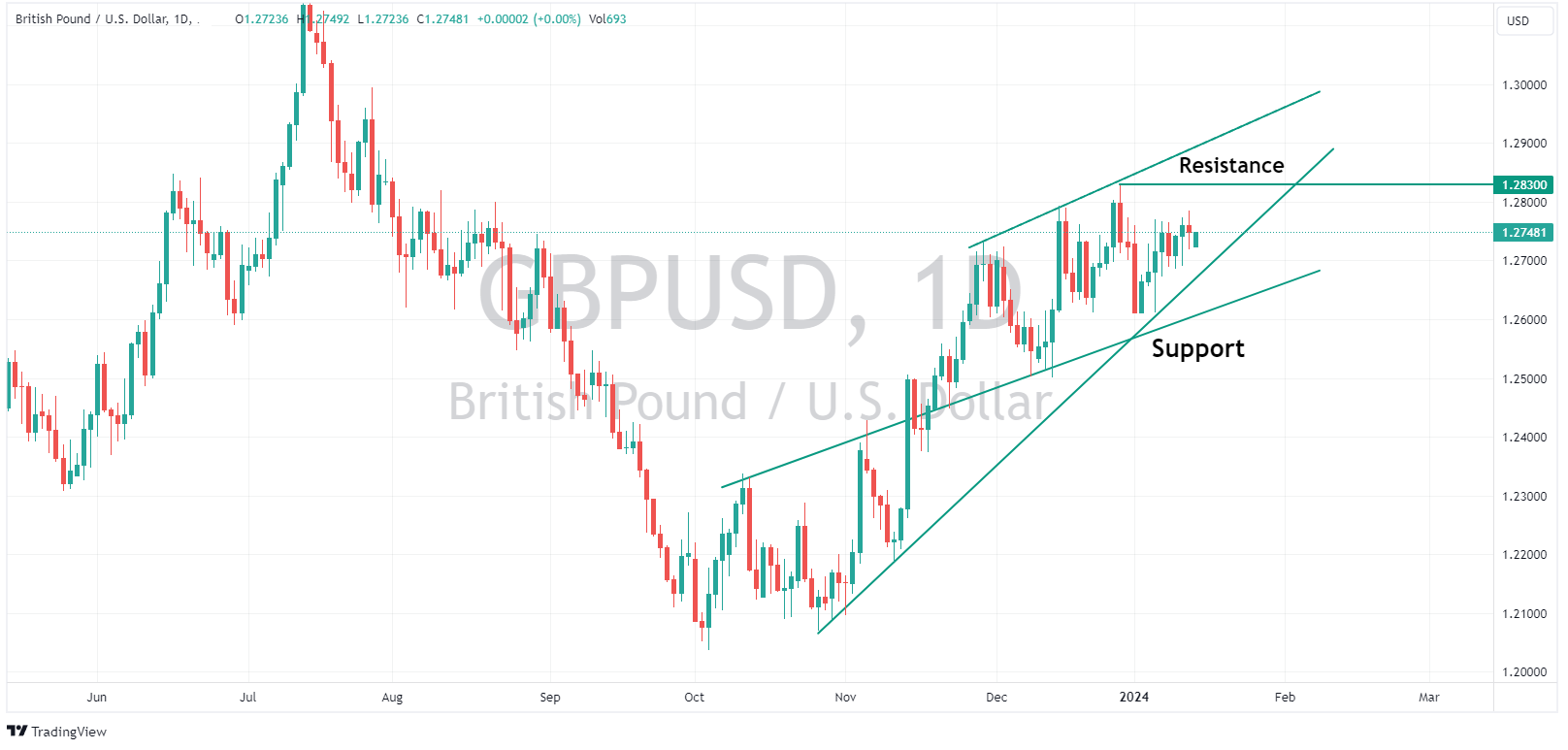 The uptrend GBPUSD has travelled in since October has petered out somewhat in 2024 to date with Cable also trading in a directionless range for the last week. For chartists there is a multitude of important levels to watch coming into the new week. Upper trendline and cycle high resistance along with lower trendline and cycle low support being the key levels to watch this week. To add to the mix for fundamental traders we have UK CPI and retail sales along with another speaking engagement for BoE governor Bailey.