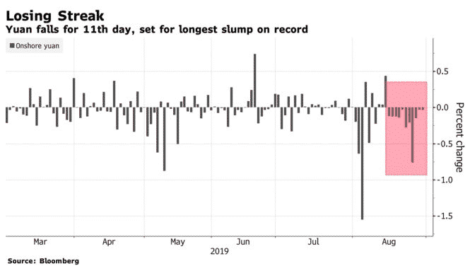 The Big Breach of the psychological level of 7 happened after President Trump announced the new round of tariffs, which prompted panic in the markets. China was even labelled as a “currency manipulator”, and tensions between the two countries have worsened. The Yuan hit an 11-year low this week, and markets participants are left wondering how much further China would allow its currency to weaken.
