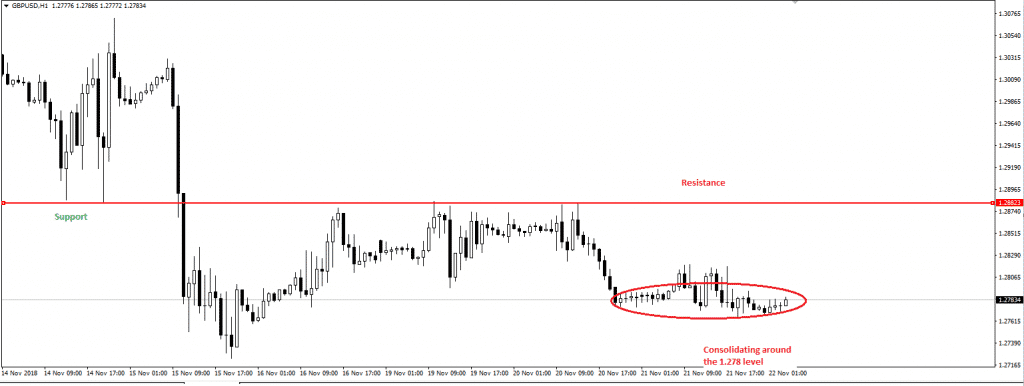 Domestic politics mostly drive the shared currency. At the moment, the EURUSD is finding upside support when the greenback is falling. On Tuesday, the pair broke from the bearish trend, it was trapped in since the end of September, but Brexit and Italian budget jitters are keeping a lid on the gains. So far, the pair is struggling to retest this month high and is currently trading in the 1.13 range.