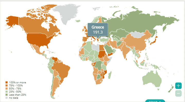 Source: International Monetary Fund, World Economic OutlookThere are hopes that Greece might be a “success story” just like Portugal, Spain, Ireland, and Cyprus but the debt problems in Europe are far from solved. A huge debt in Greece and Italy will remain the lurking financial threat to Europe.
