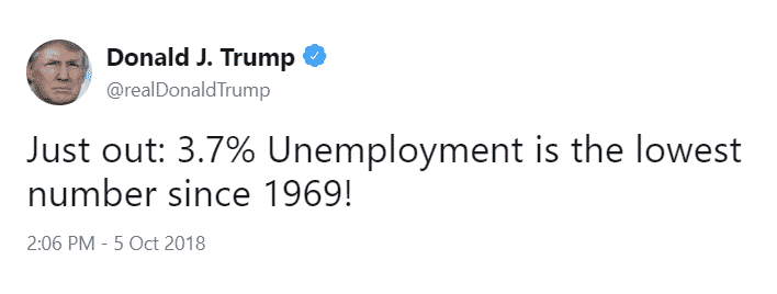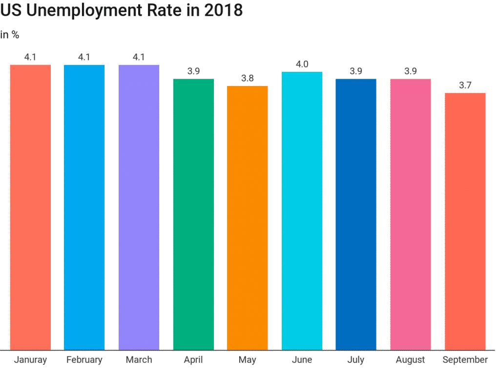 The unemployment rate declined by 0.2% to 3.7% in September better than the forecast of 3.8%. Worth pointing out that the latest unemployment rate is the lowest level for 49 years. The number of unemployed people decreased by 270,000 to 6 million.