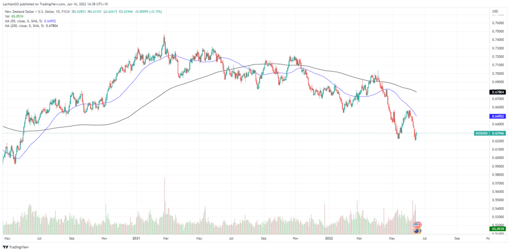 The New Zealand dollar dropped on the news before rallying and is currently buying 0.63 USD. The NZD recovered after the drop before settling. The NZD.USD pair has been in a downward trend since March 2021. It has seen a recent test of the 2-year lows.