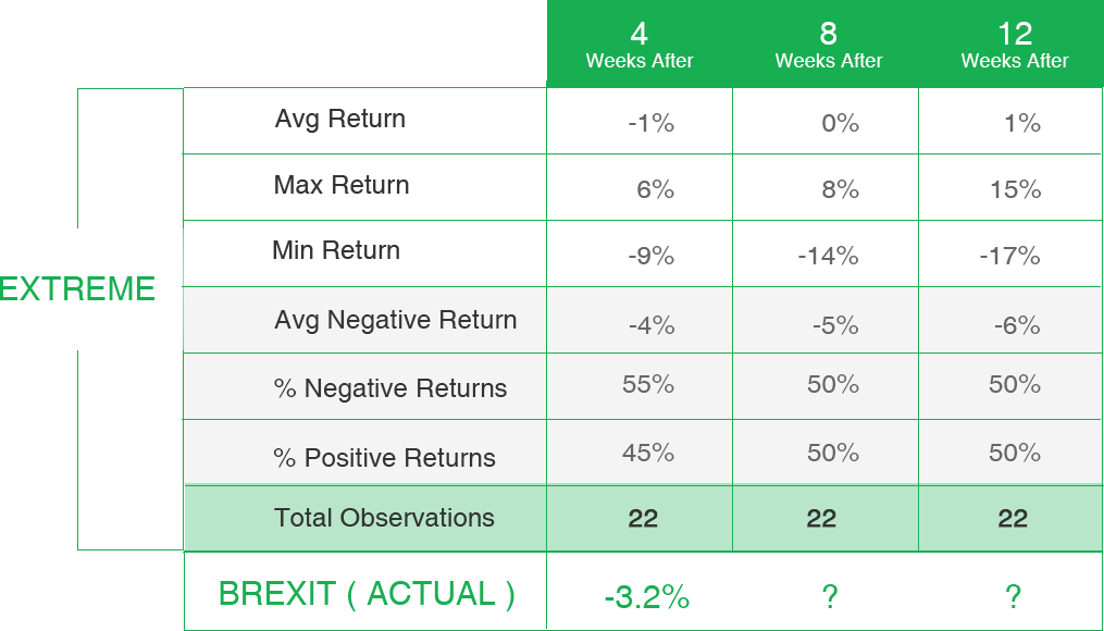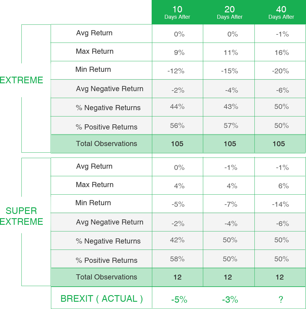 Regardless of how you chose to see the Brexit events, in this article I am going to crunch some numbers to see if such extreme price actions can potentially have any explanatory power that can be used by medium and short term traders.