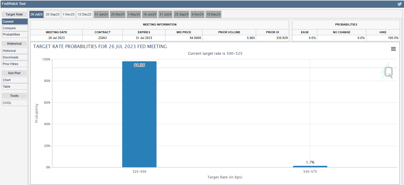 All eyes are now on the upcoming FOMC meeting, where the market is currently pointing towards a high probability (over 98%) of a 25bps rate hike on Wednesday.