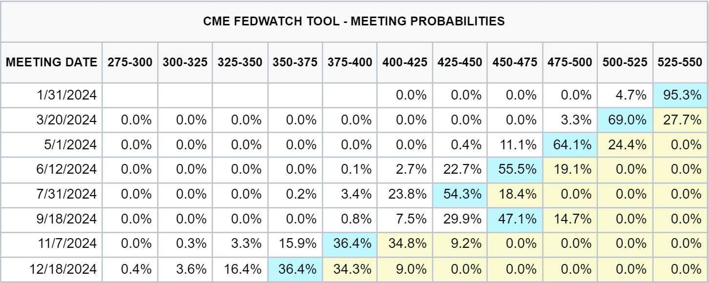 Data suggests the possibility of multiple rate cuts in 2024, with some anticipating cuts as early as the March Federal Open Market Committee (FOMC) meeting. According to CME data, market expectations indicate a projection of six rate cuts for 2024, culminating in an effective rate of approximately 3.50-3.75% by year-end.