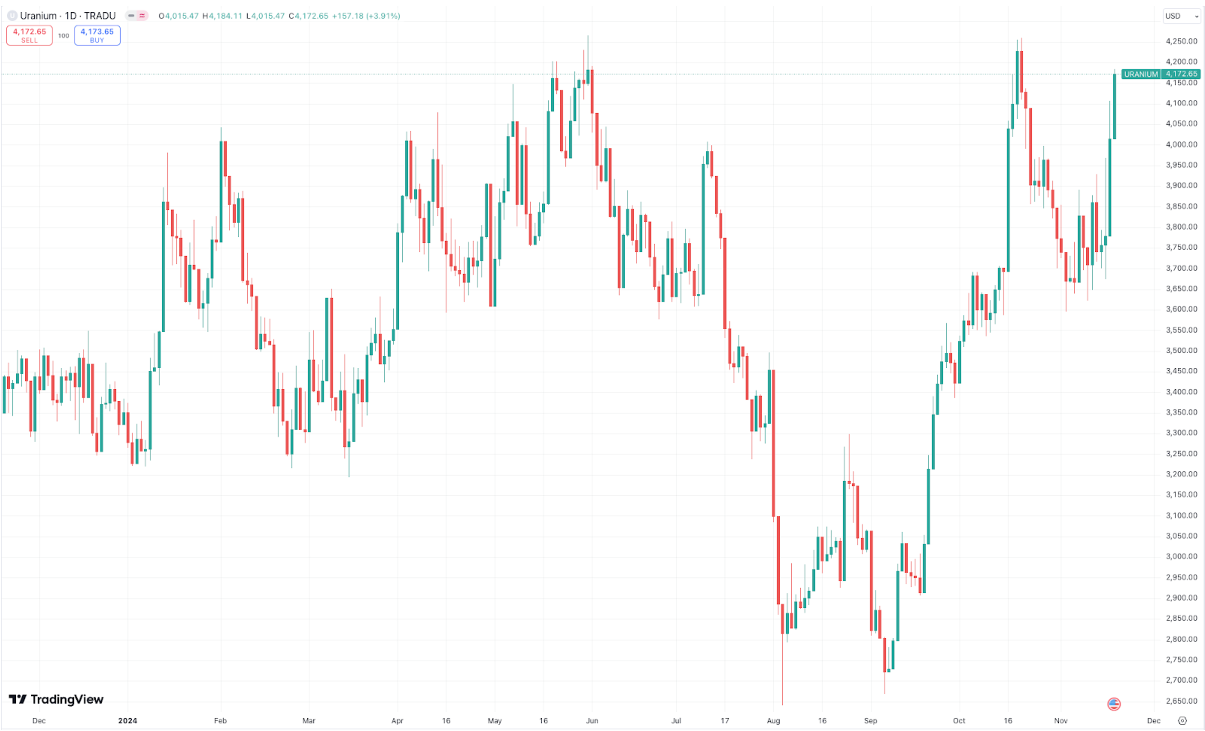 The first major factor influencing uranium demand stems from the U.S. political landscape. The election of President-elect Donald Trump introduces a new energy agenda, one that could reshape the trajectory of nuclear power in the United States. While Trump’s campaign rhetoric and early post-election messaging have heavily emphasised fossil fuel expansion – check last week’s piece on the “drill, baby, drill” thematic – it’s clear that nuclear power also holds a significant place in his vision for America’s energy future.