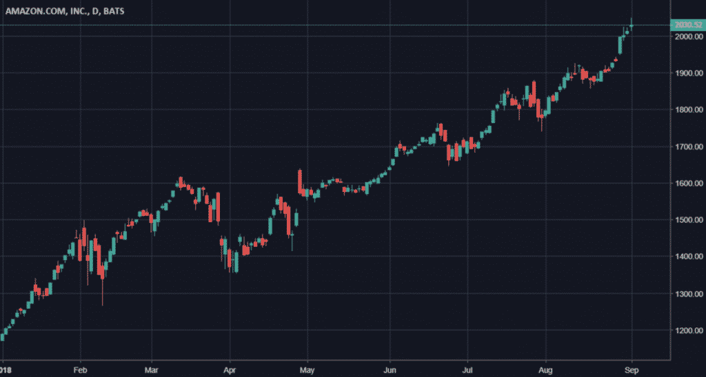 Not many people expected Amazon to reach $1 trillion this quickly. Back in March, Brent Thill an analyst from Jeffries stated that Amazon would reach the milestone in 2022 when the share price was at around $1585 per share. But since then, we have seen the share price increase by around 28% and Amazon become world’s second company to reach $1 trillion market cap. With Amazon continuing acquiring new companies, we could see the share price rising in the future.