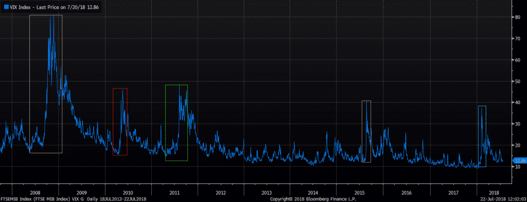 To better see how the VIX affects other markets, we have selected 5 scenarios in Chart 3 where volatility has significantly jumped up over the past ten years.