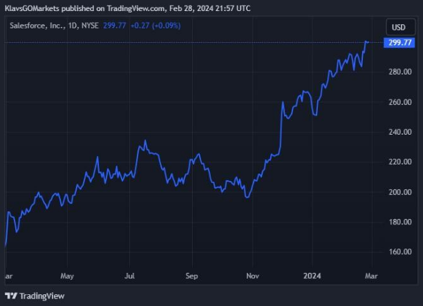 29 February 2024 By Klavs ValtersAmerican customer relationship management company Salesforce Inc. (NYSE: CRM) released the latest financial results after the closing bell on Wall Street on Wednedsay.