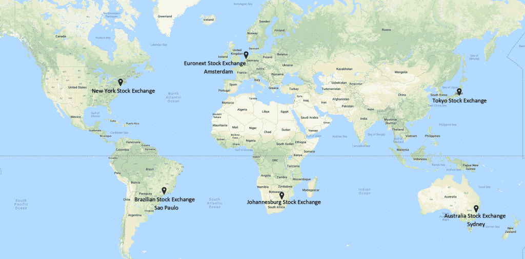 Map of the Largest Stock Exchanges by Continent