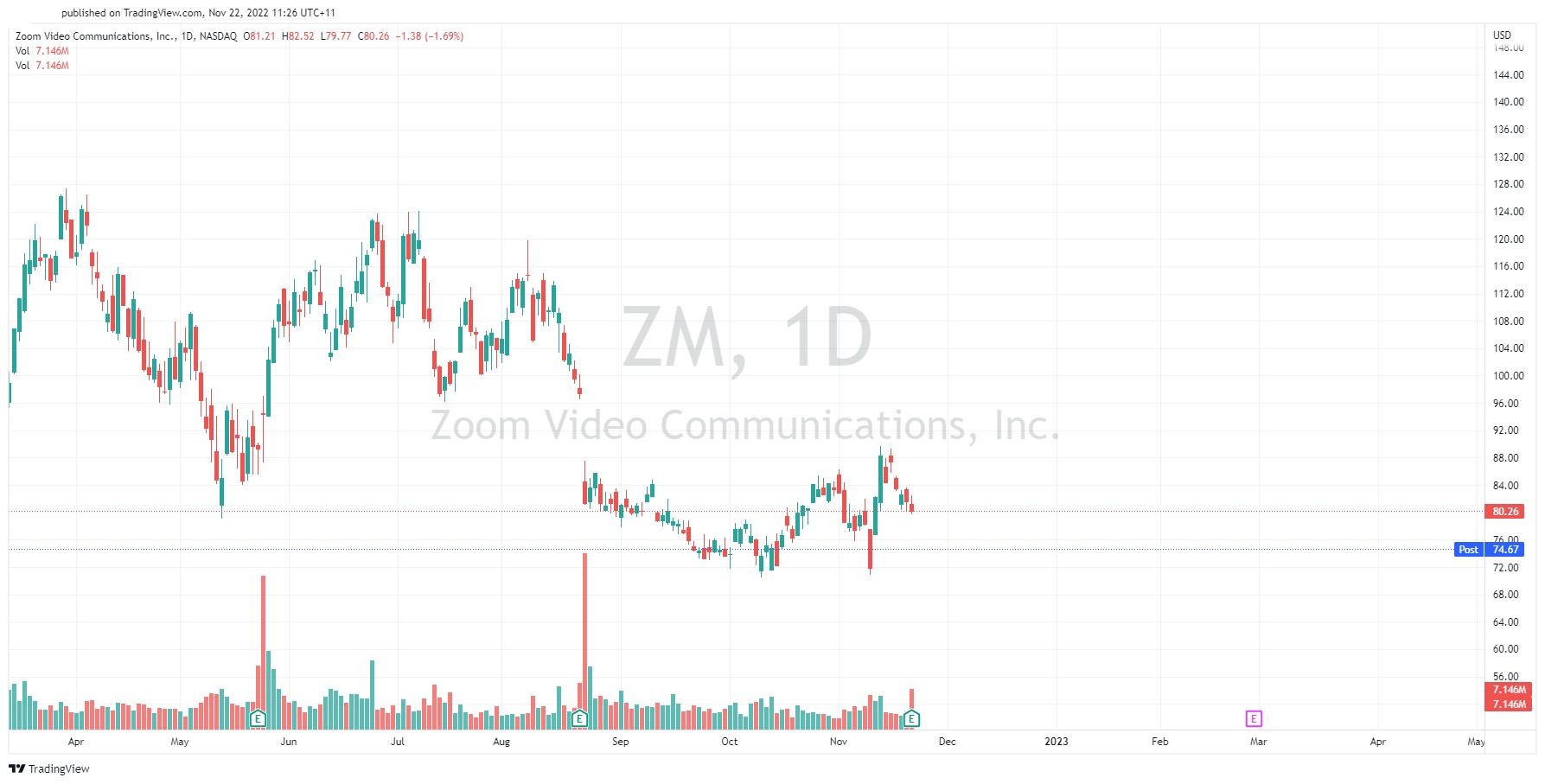 Shares of Zoom were down by 1.69% on Monday, trading at $80.20 a share.