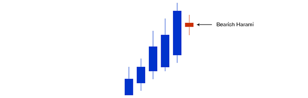 The important thing to consider is the size of the body of both candles as it is indicative of the strength of the signal. The first candle should have a rather large body. The smaller the body in the second candle the stronger the signal. Example of a Bearish Harami: